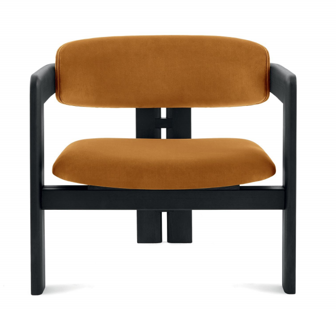实心白蜡木结构扶手椅,黑色开孔。也可提供天然灰、烟草染色或开孔白色染色。座椅和靠背,采用弯曲胶合板制成,带有聚氨酯泡沫衬垫,覆盖有样品颜色的织物或皮革。