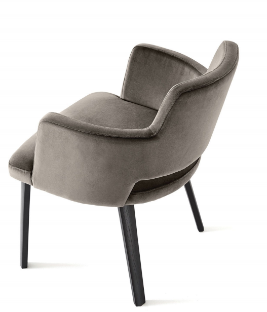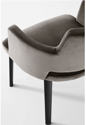 扶手椅内部结构为木材和副产品,填充有不同密度的不可变形聚氨酯泡沫和聚酯纤维。样品颜色的织物或皮革内饰。腿在开孔黑色橡木染色。不可拆卸。