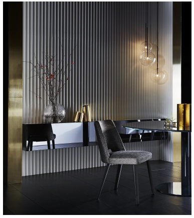 椅子的内部结构由木材和副产品制成,填充有不同密度的不可变形聚氨酯泡沫和聚酯纤维。样品颜色的织物或皮革内饰。腿在开孔黑色橡木染色。不可拆卸。