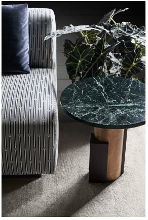 咖啡桌采用 Verde Alpi、Calacatta Vagli Oro 或 Nero Marquinia 大理石制成。手工抛光黄铜结构和开孔黑漆木部件。