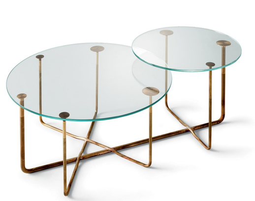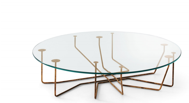 超轻钢化玻璃咖啡桌。手工抛光黄铜结构。黄铜自然染色且不均匀。这种工艺赋予每件作品独特的独特性,使其独一无二。