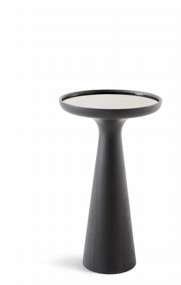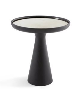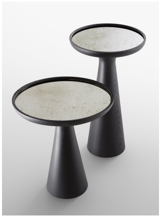 开孔黑漆实木咖啡桌。顶部“grigio Italia”镜子。也可提供“Antique 1”镜子或 Calacatta Vagli Oro 大理石或 Verde Alpi 大理石。