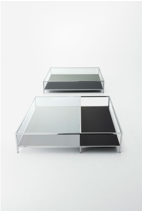咖啡桌采用抛光不锈钢结构。上部顶部采用 8 毫米透明钢化玻璃。下部顶部采用 8 毫米透明钢化玻璃,或涂上与样品颜色相同的亮色或缎面版本。根据要求采用缎面黄铜结构。