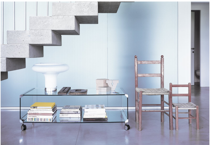 带轮子的咖啡桌采用 8 毫米钢化透明或“grigio Italia”玻璃制成。抛光不锈钢金属部件。根据要求提供缎面不锈钢、抛光黄铜、缎面或压纹白色或黑色漆面。不带轮子的可用版本(成品高度:34 厘米)。