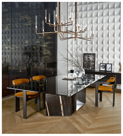 带有 15 毫米黑色背漆玻璃桌面的明亮和缎面版本的桌子。顶部两侧的重要 4 厘米斜面。木质底座覆盖 20 毫米撒哈拉黑色大理石和“超级镜面”抛光不锈钢底板。还提供 15 毫米玻璃顶部和木质底座的版本,覆盖有黑色、蓝灰色或甘草色的 6 毫米背漆玻璃,有亮色或缎面版本,或带有独特的羊绒金灰色或无烟煤饰面。