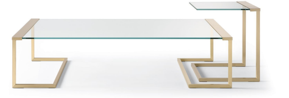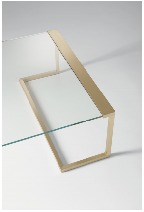 咖啡桌采用 10 毫米钢化透明或“grigio Italia”玻璃桌面。镀铬黄铜结构。根据要求抛光或缎面黄铜。