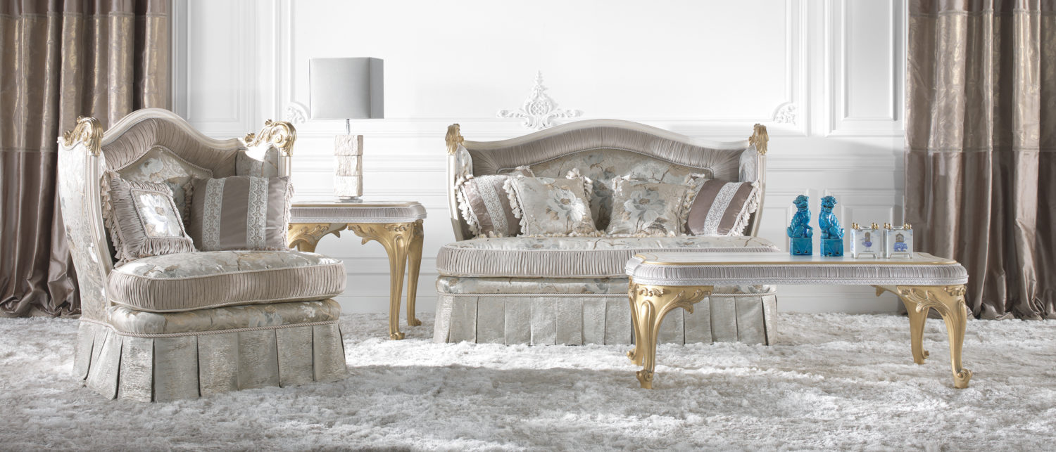 边桌采用山毛榉木结构,带有法国象牙和金色饰面。织物带。顶部有石膏装饰。还提供浅橡木和金色饰面,顶部饰有金箔装饰。