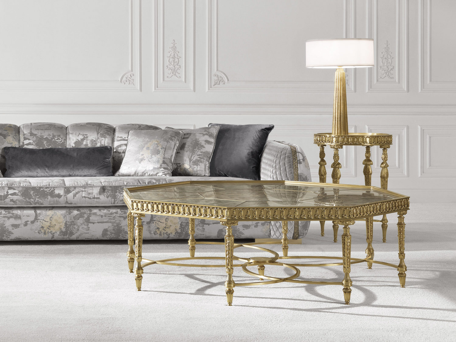 边桌采用失蜡铸造黄铜结构。在浑浊的玛瑙中顶部。
