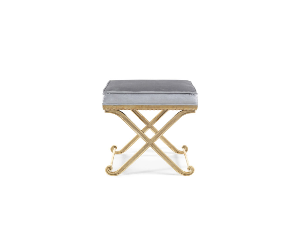 黄铜结构凳子,带有失蜡铸造装饰元素。泡沫填充。织物内饰。