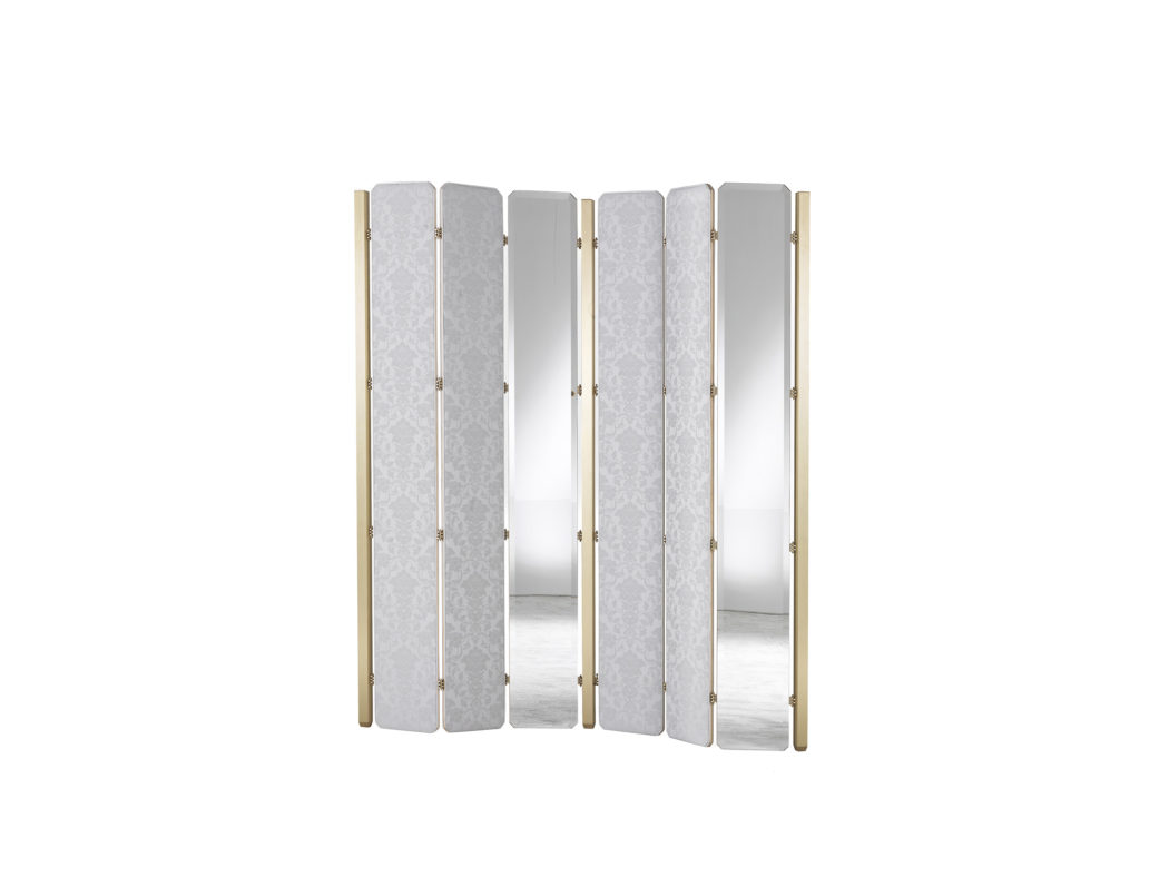 多层木板和斜面镜子结构的屏幕。织物内饰。黄铜框架。