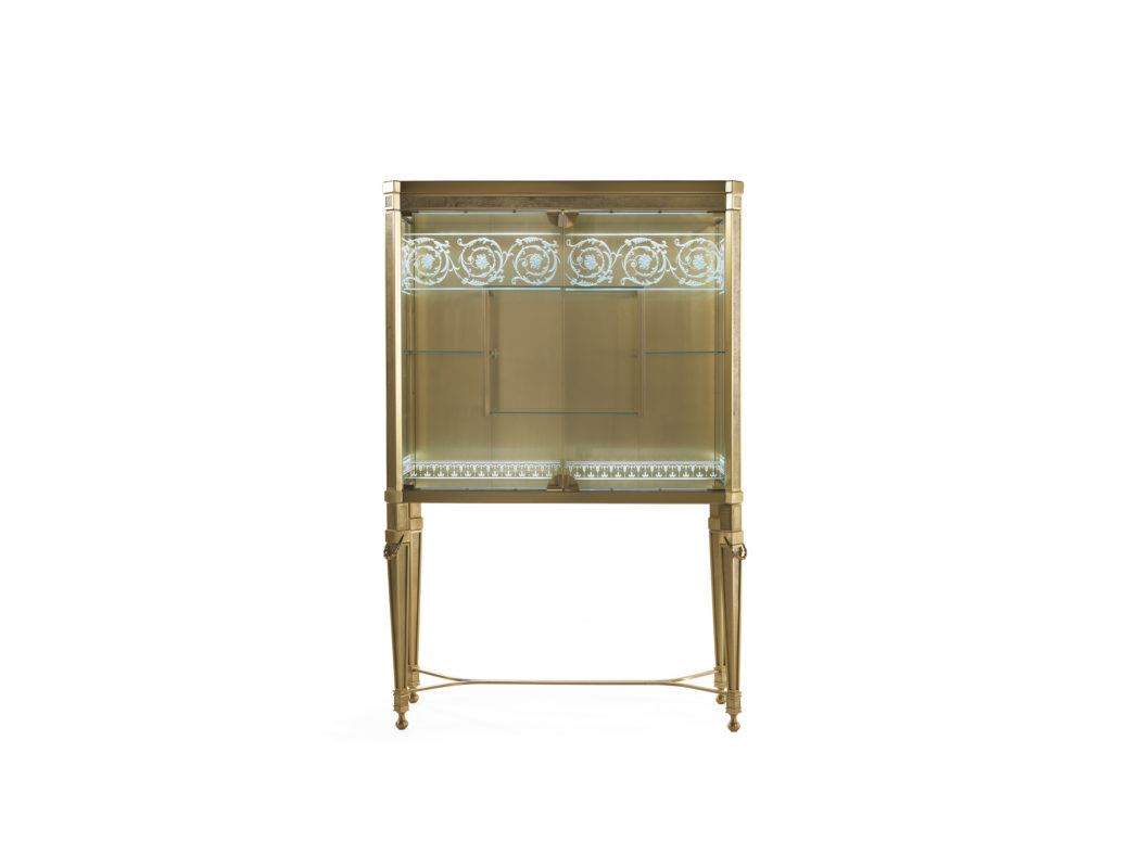 金属结构展示柜。刻有希腊古典装饰的眼镜。照明系统。