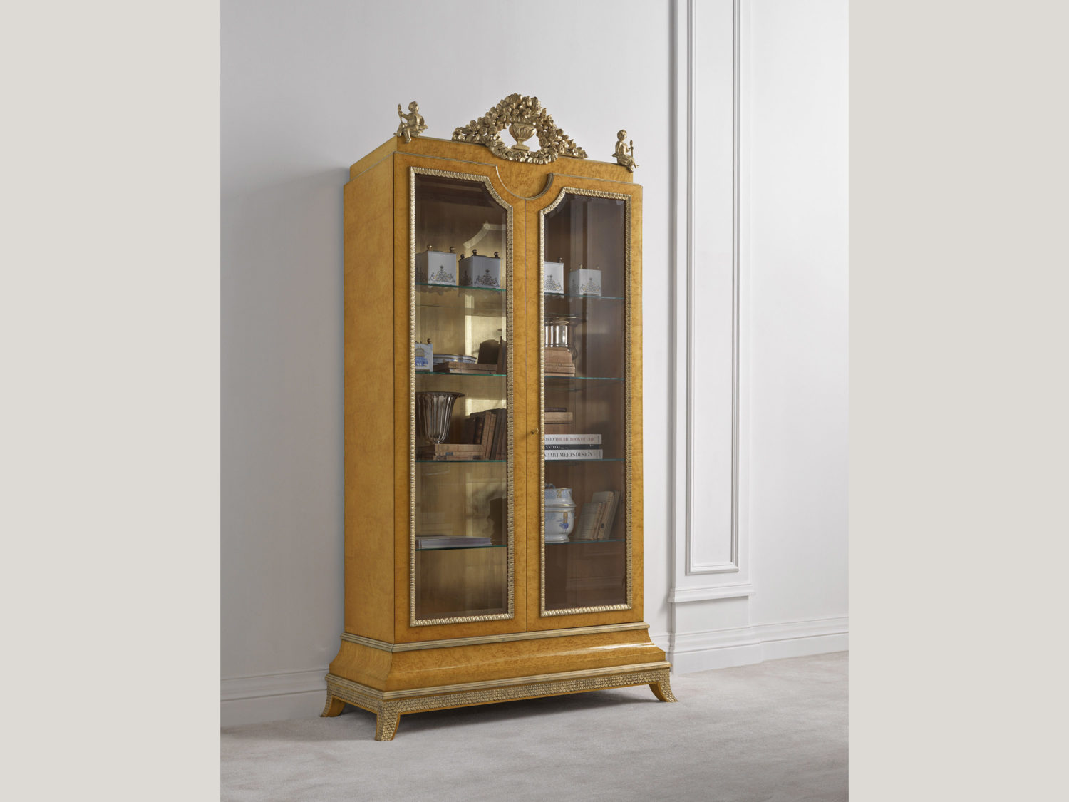 展示与多层可加工的鸟眼枫木结构与光泽的整理。细节与古董金饰面。背面有金箔饰面。